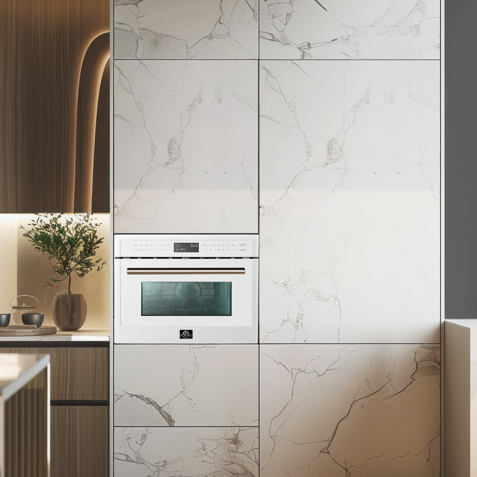 Forno Oliena Espresso White 24-Inch Built-In Microwave and Convection Oven Combo, 1.6 cu.ft, 1750W Convection, 1000W Microwave, Stainless Steel Interior, Glass Touch Controls, Sensor Cooking